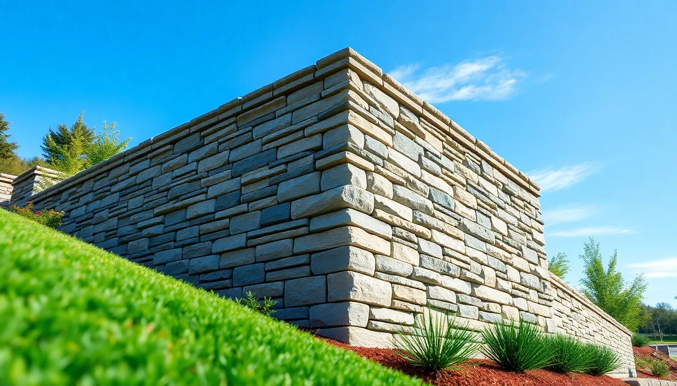 Stone retains a classic aesthetic and robust performance. Natural stone, such as granite or limestone, provides unique visual appeal and integrates well into garden settings. Stone walls can endure significant loads and are often used for taller applications. They utilize gravity to stay in place, typically ranging from 3 to 10 feet in height. Proper drainage management is crucial to prevent moisture buildup, ensuring longevity.